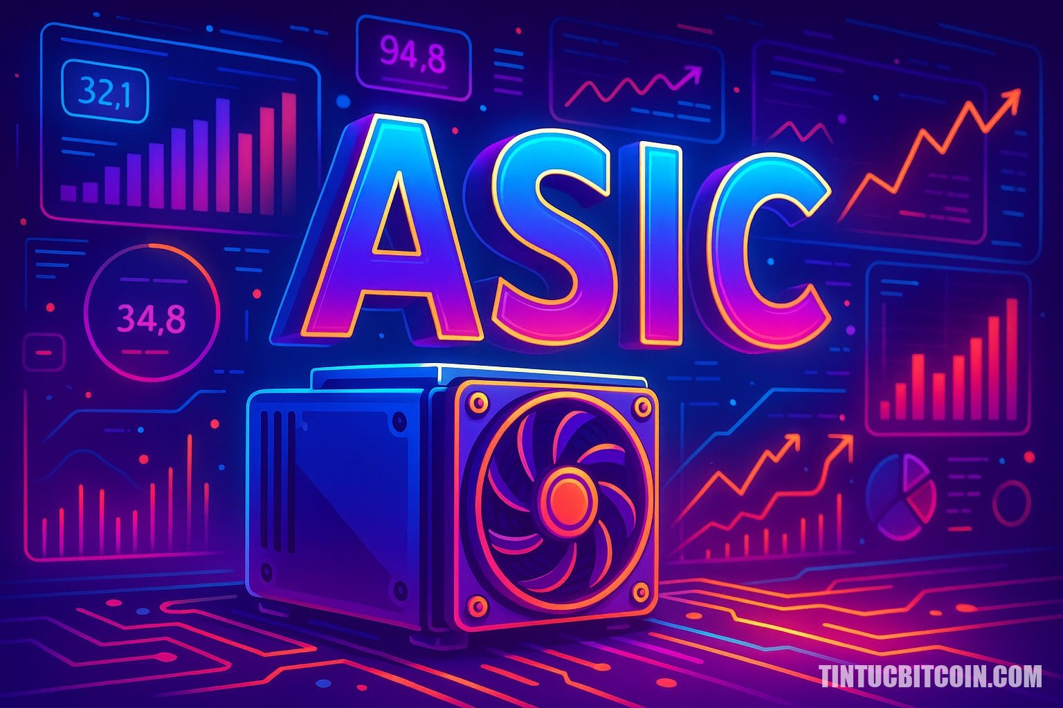 - ASIC là vi mạch chuyên dụng, tối ưu hóa hiệu suất cho một mục đích cụ thể như đào Bitcoin.