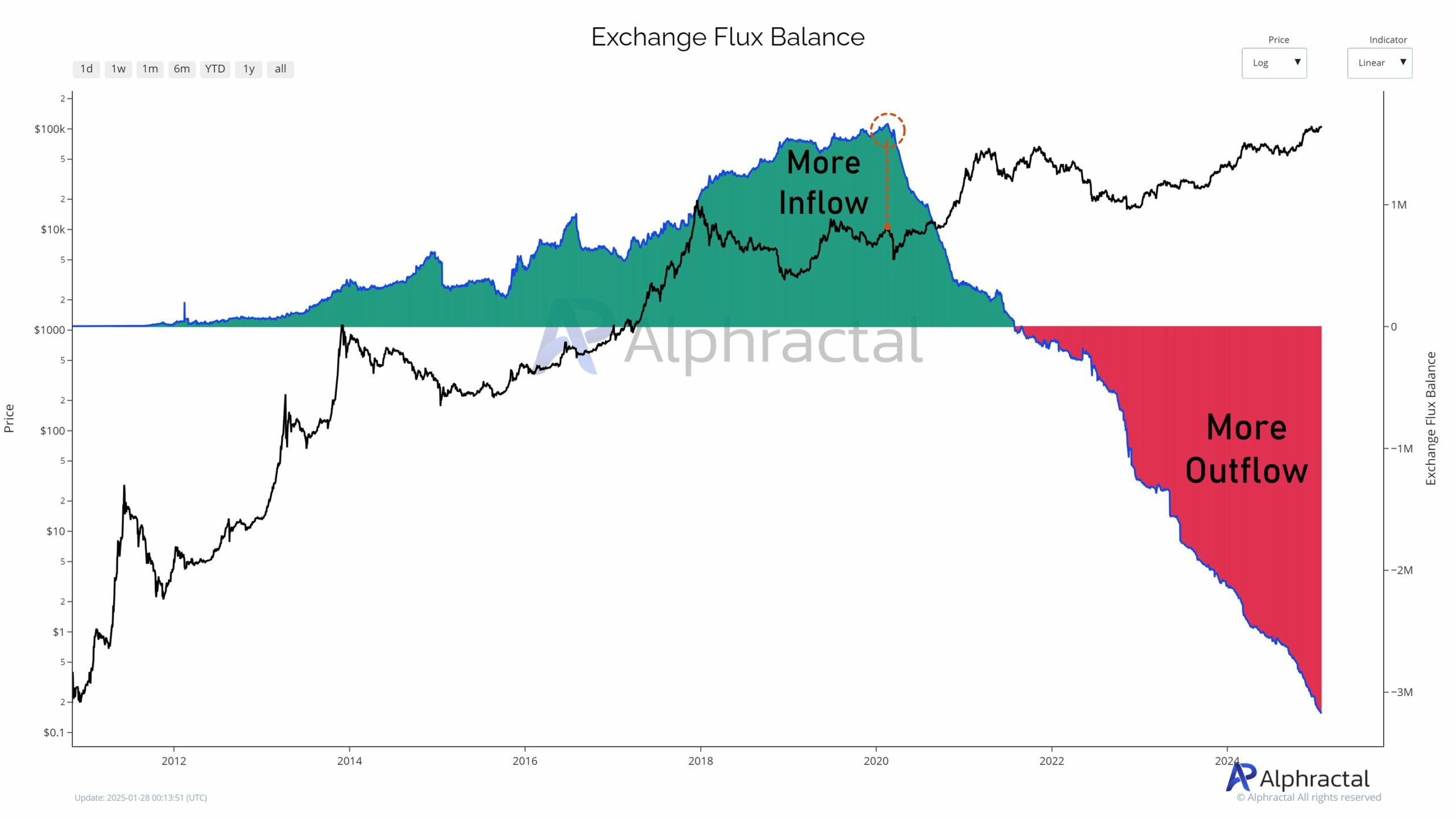 “4,85 triệu BTC đã rời khỏi Sàn giao dịch từ tháng 2/2020! Cân bằng luồng giao dịch cho thấy một sự thay đổi lớn. Từ 2020, cuộc chơi đã thay đổi—ai cũng muốn sở hữu Bitcoin bằng mọi giá.”