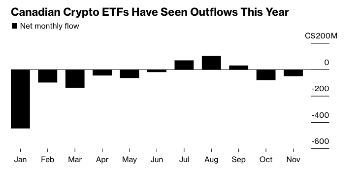 Dòng vốn ra khỏi ETF tiền điện tử Canada năm 2024. Nguồn: Bloomberg