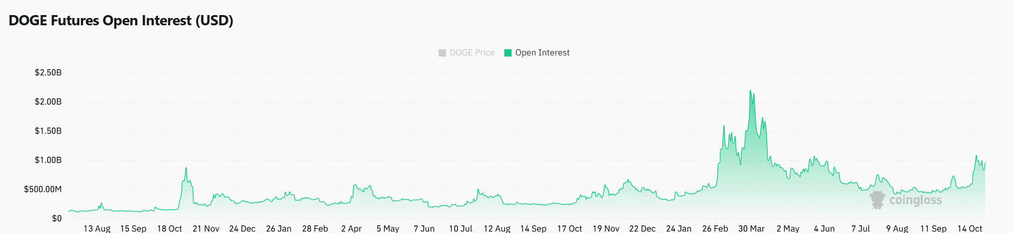 Hơn nữa, lãi suất mở của Dogecoin đã tăng 15,69%, hiện đạt tổng cộng 988,75 triệu USD. Sự gia tăng này cho thấy sự gia tăng đáng kể trong hoạt động đầu cơ, có thể phản ứng với đợt bứt phá.
