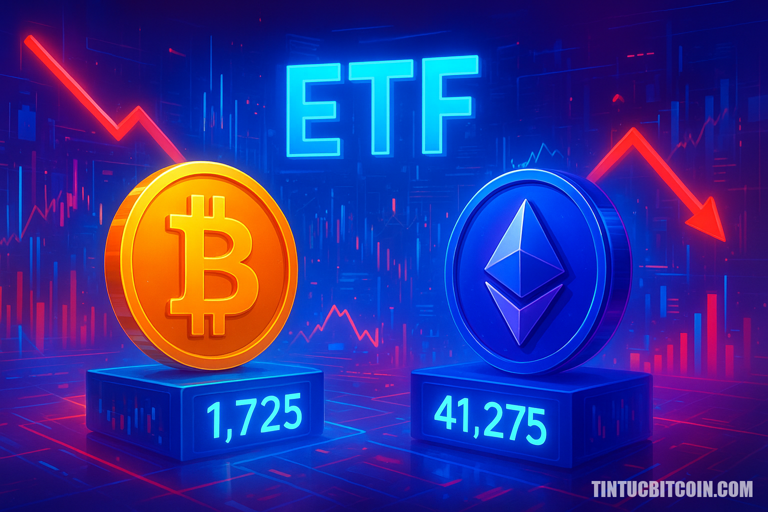 Trong cùng một kỳ báo cáo, các quỹ ETF spot Bitcoin tại Mỹ ghi nhận dòng tiền rời ròng 1.725 BTC, còn các quỹ ETF Ethereum mất ròng 41.275 ETH.