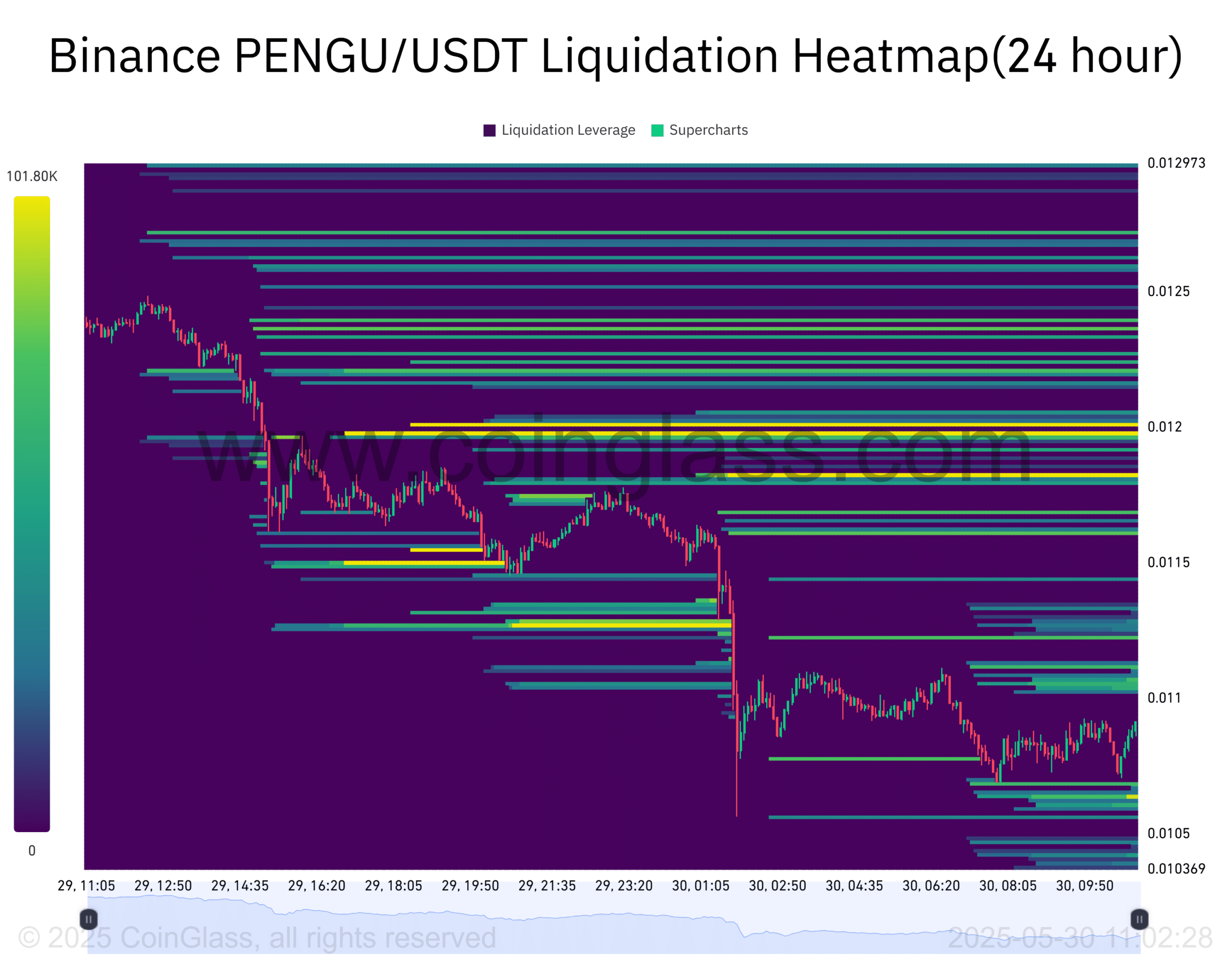 Sử dụng bản đồ nhiệt thanh lý, dữ liệu cho thấy PENGU có khả năng thực hiện một động thái tăng mạnh.