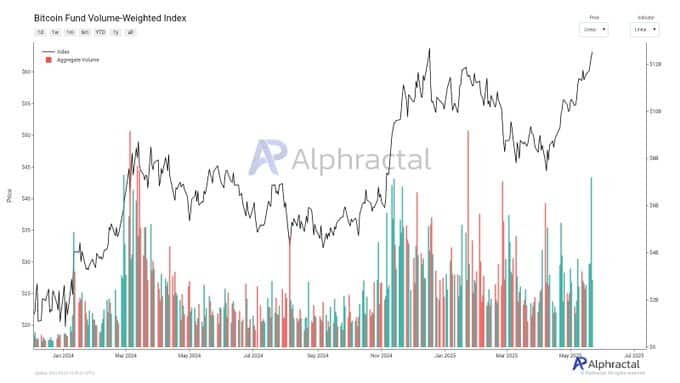 Một bức tranh thị trường lành mạnh tương tự được João Wedson từ Alphractal miêu tả, dựa trên volume giao dịch từ các quỹ Bitcoin.