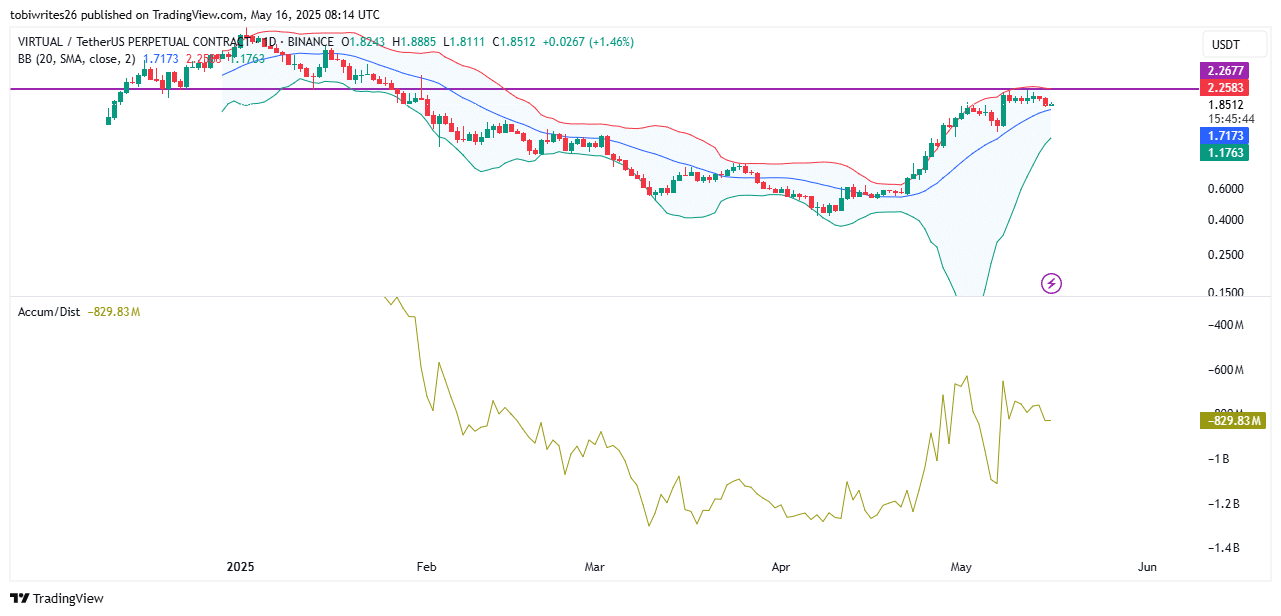 Sau khi tăng 237% trong tháng qua, Virtuals Protocol [VIRTUAL] đã bước vào giai đoạn điều chỉnh, giảm 13% theo tuần và 2,3% theo ngày.